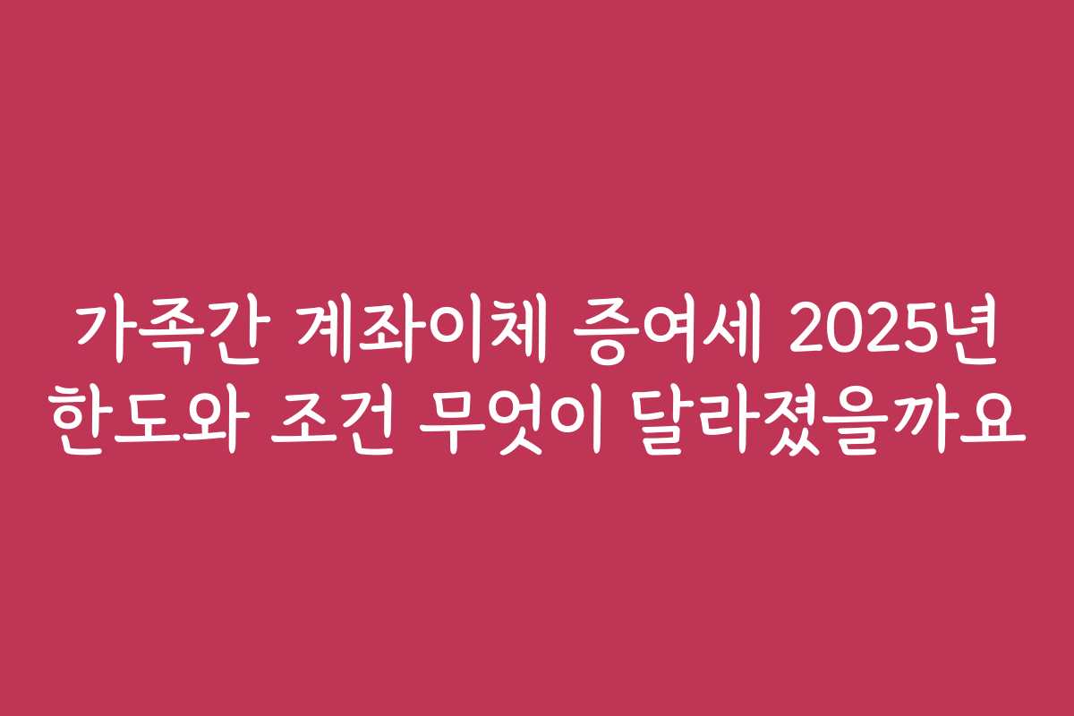 핵심 키워드: 가족간 계좌이체, 증여세, 한도, 2025년, 조건, 변화, 세액, 재정, 정책, 세무 신고, 재산 관리