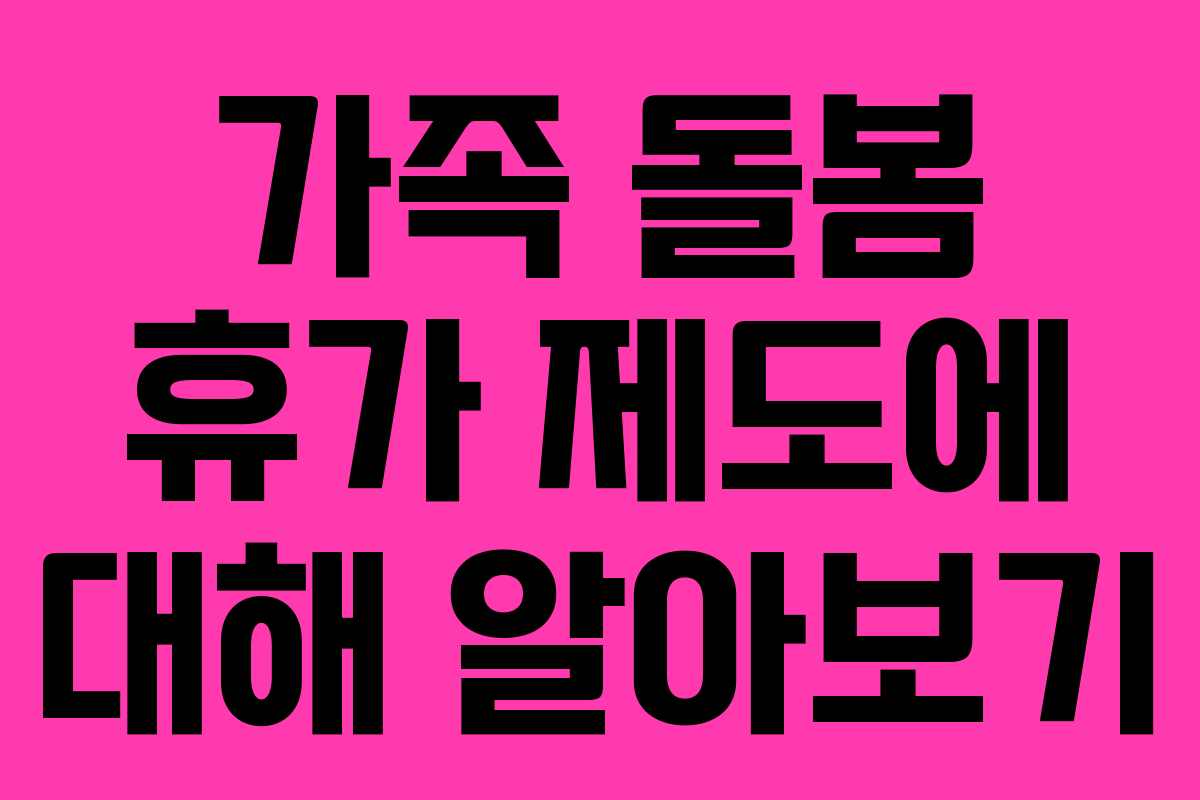 가족 돌봄 휴가는 근로자가 질병이나 사고 등으로 인해 가족을 돌봐야 할 때 제공되는 제도입니다. 이 제도는 가족 구성원의 돌봄을 지원하여 근로자가 보다 유연하게 가족을 돌볼 수 있도록 도와줍니다.