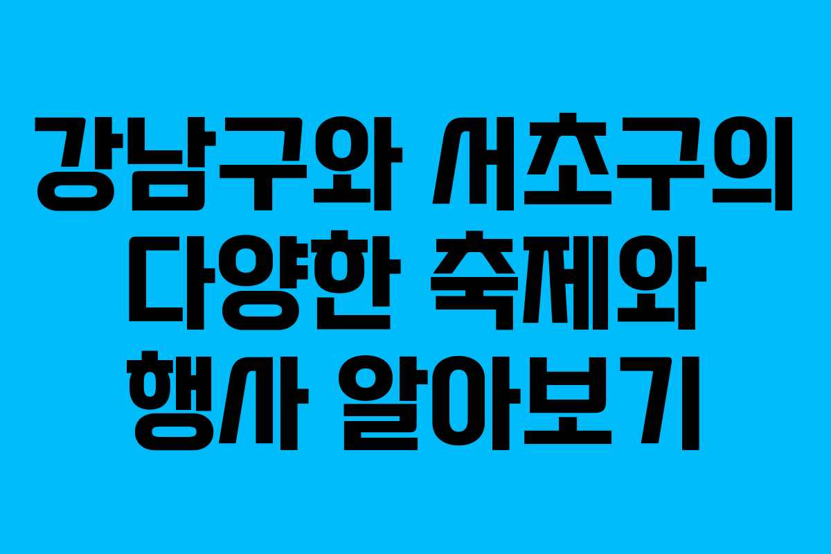 강남구와 서초구의 축제는 계절별로 다양한 모습으로 여러분을 맞이합니다. 아름다운 자연과 함께하는 축제는 일상의 스트레스를 잊게 해주고, 소중한 추억을 만들어 줄 것입니다. 매년 열리는 이 축제들에 관심을 두고, 기회를 놓치지 마세요.