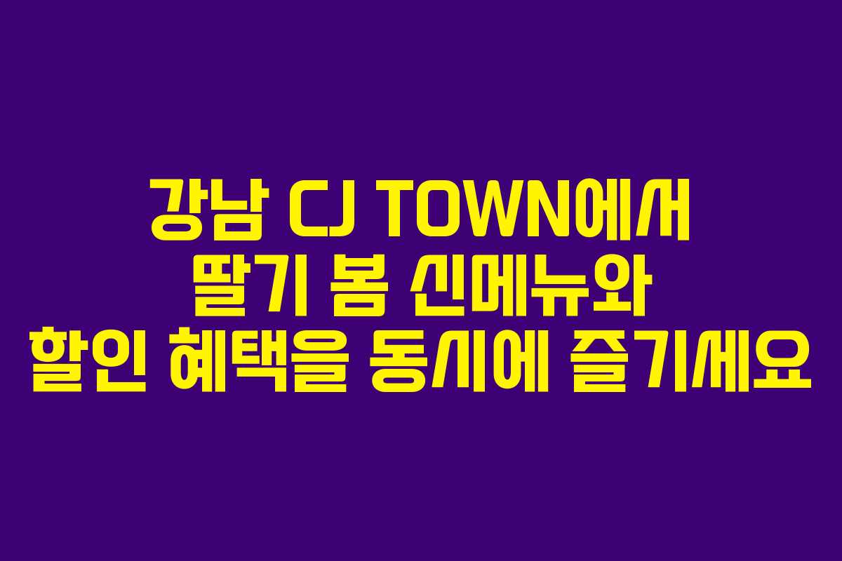 강남 CJ TOWN의 빕스에서 제공하는 딸기 봄 신메뉴와 할인 혜택은 2026년 봄을 맞이하여 더욱 특별한 경험이 될 것입니다. 다양한 제휴 브랜드와의 혜택을 통해 여러분의 외식과 쇼핑을 한층 더 즐겁게 만들어 줄 것입니다. 미리 계획을 세우고 방문하여 이 특별한 혜택을 만끽해 보세요.