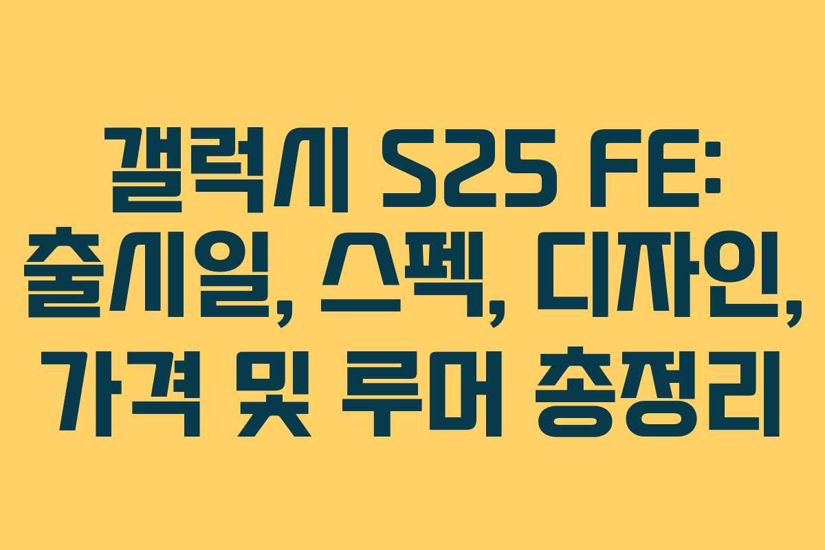 갤럭시 S25 FE는 많은 이들의 기대를 모으고 있는 스마트폰으로, 삼성의 실속형 플래그십 시리즈에서 중요한 위치를 차지하고 있습니다. 이번 글에서는 갤럭시 S25 FE의 출시일, 스펙, 디자인, 가격 및 관련 루머를 자세히 살펴보겠습니다.