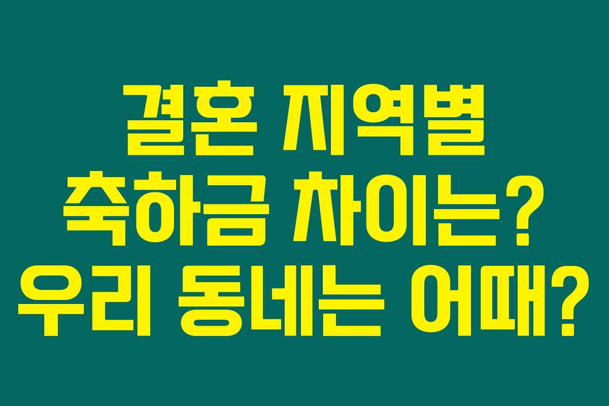 결혼식은 인생에서 가장 특별한 순간 중 하나인데요. 그런데 결혼을 결정하고 난 뒤 많은 사람들이 가장 궁금해하는 것 중 하나가 바로 ‘축하금’의 금액이에요. 지역에 따라 축하금이 달라진다는 점, 알고 계셨나요? 이번 글에서는 결혼하는 지역에 따른 축하금 차이를 살펴보며 우리 동네의 축하금은 어떤지 알아보겠습니다.