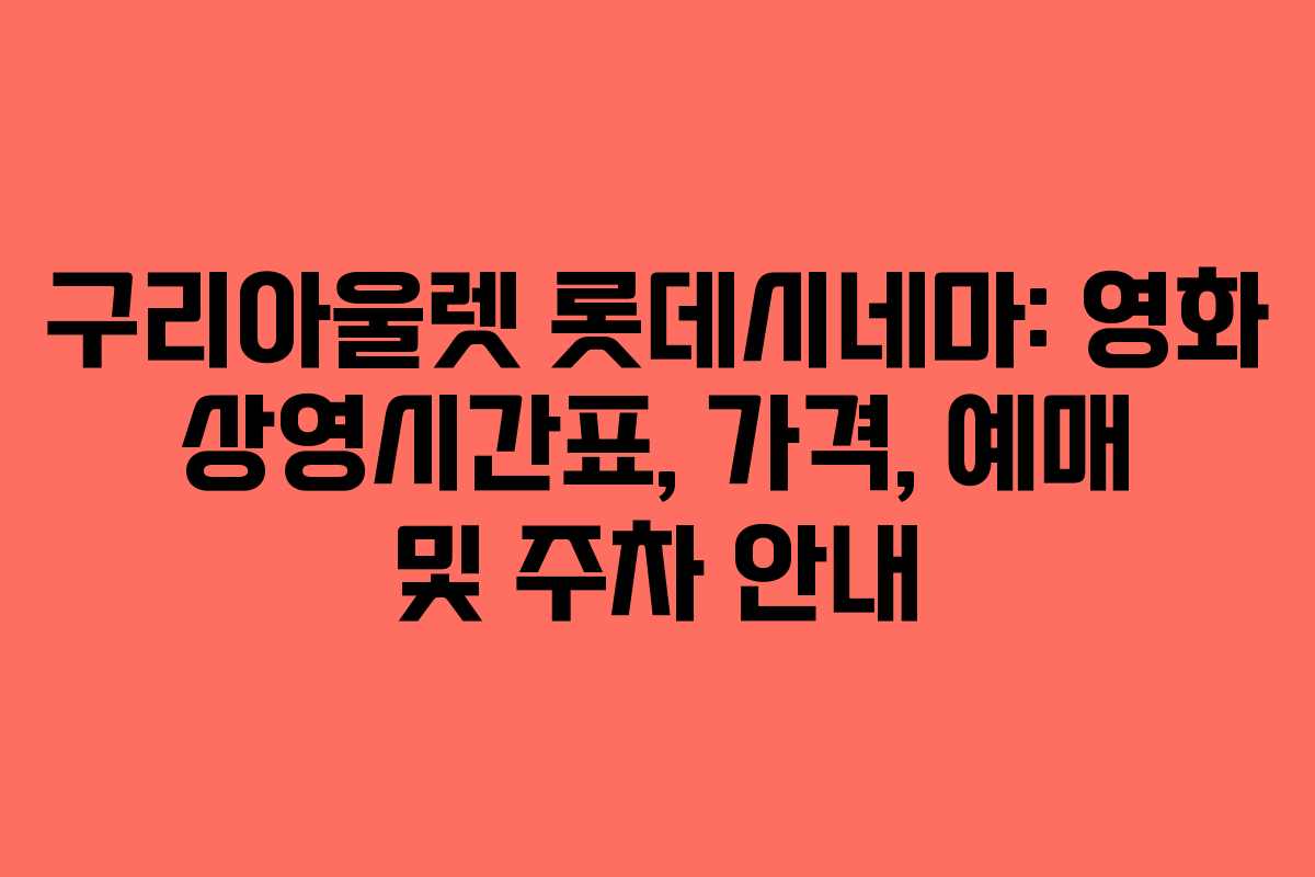 구리아울렛 롯데시네마는 경기도 구리시에 위치한 복합 멀티플렉스 영화관으로, 쇼핑과 문화가 어우러진 공간입니다. 본 영화관에서는 다양한 영화 상영시간표, 가격 정보, 영화 예매 방법, 주차장 이용 안내 등 관람에 필요한 모든 정보를 제공합니다.