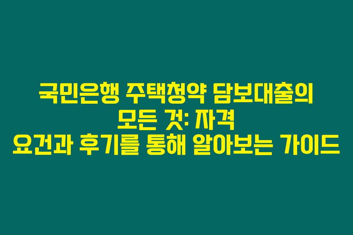 국민은행 주택청약 담보대출의 모든 것: 자격 요건과 후기를 통해 알아보는 가이드