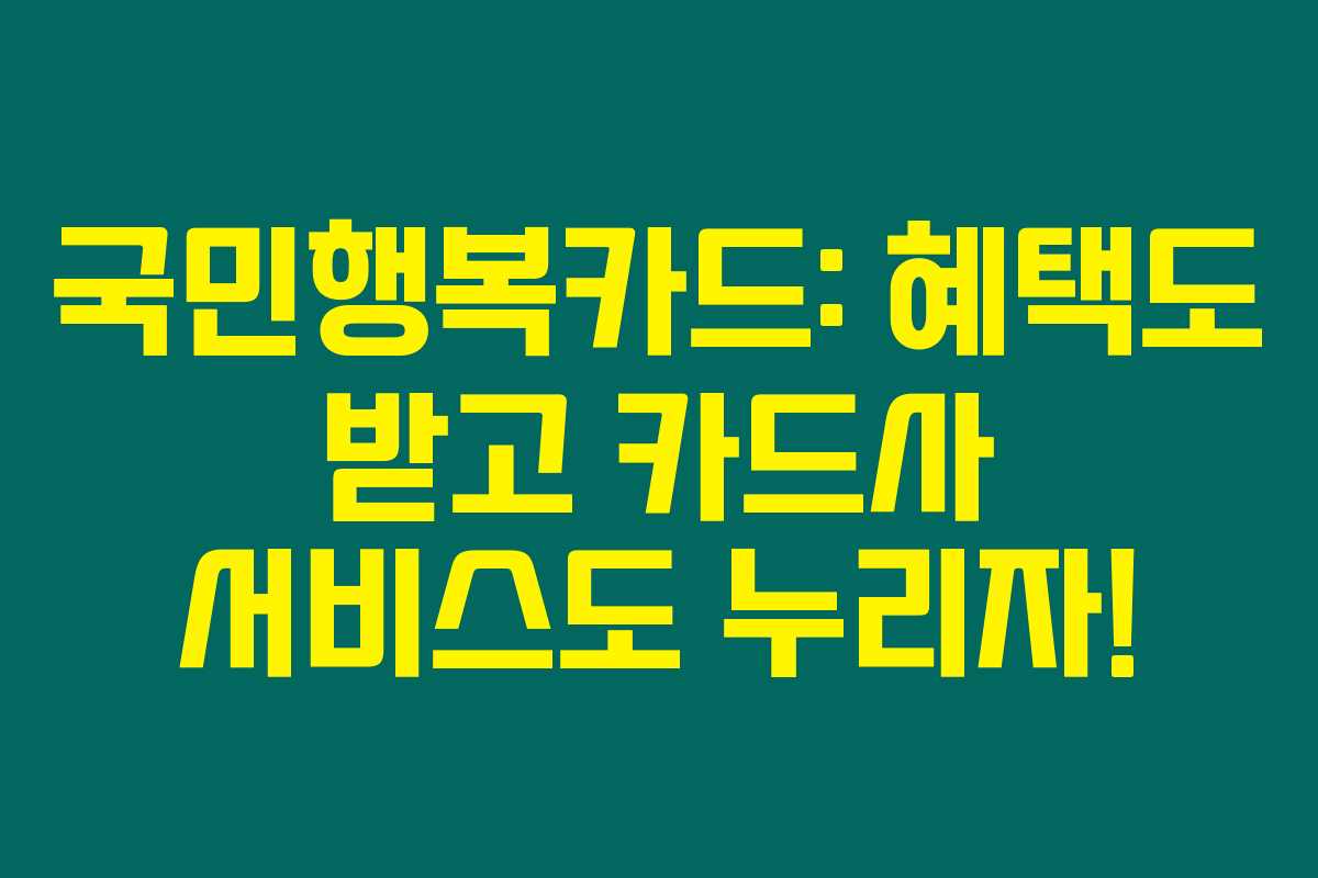 제가 직접 경험해본 바로는, 국민행복카드는 복지 혜택을 쉽게 받을 수 있는 훌륭한 카드에요. 카드사별 특별 서비스와 바우처 혜택도 동시에 누릴 수 있는 이 카드에 대해 심도 있게 알아보세요. 아래를 읽어보시면 국민행복카드에 대해 자세히 안내해 드립니다.