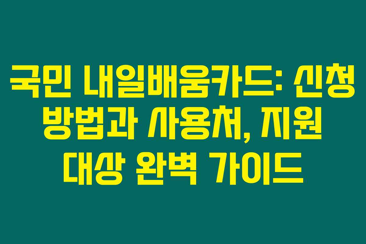국민 내일배움카드는 취업, 이직, 또는 개인의 역량 개발을 위해 필요한 교육비를 지원해주는 카드입니다. 이 카드를 통해 훈련비를 지원받을 수 있어, 필요한 교육을 보다 저렴하게 수강할 수 있게 되지요.
