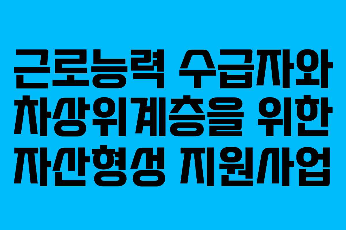 정부는 근로능력이 있는 수급자와 차상위계층을 대상으로 자산형성 지원사업을 통해 저축을 유도하고, 추가적인 근로소득장려금을 지원합니다. 이 사업은 3년 동안 통장에 매월 일정액을 저축하면 정부에서 추가로 장려금을 매칭 적립하여 지급하는 형태로 운영됩니다.