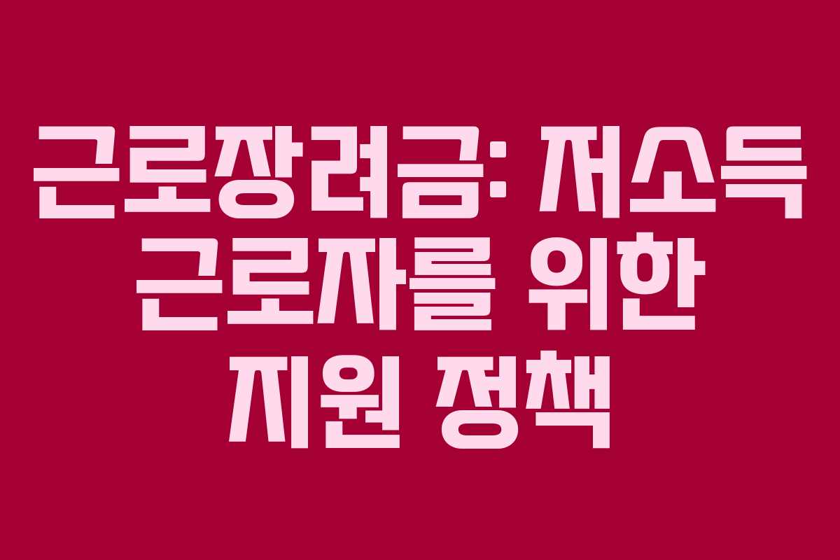 근로장려금: 저소득 근로자를 위한 지원 정책