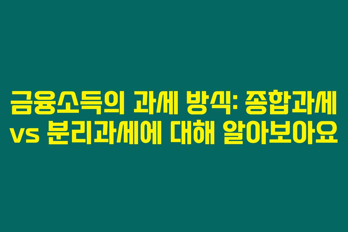 제가 직접 알아본 바로는, 금융소득의 과세 방식은 종합과세와 분리과세로 나누어집니다. 이 두 가지 방식은 금융소득의 종류와 금액에 따라 크게 달라지는데요, 아래를 읽어보시면 각각의 상세한 내용과 무조건 분리과세의 범위, 원천징수세율까지 한 번에 알 수 있을 거예요.