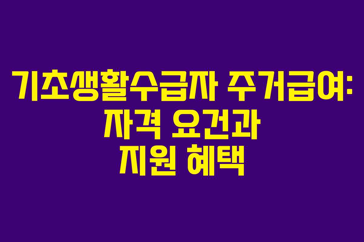 주거급여는 기초생활수급자와 소득이 낮은 가구의 주거 안정을 위한 제도로, 임대료나 주택 수선비 지원 등 다양한 혜택을 제공합니다. 이번 글에서는 주거급여의 자격 요건, 지원 내용, 신청 방법 등을 자세히 설명합니다.