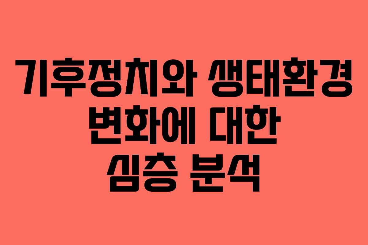 기후정치와 생태환경 문제는 오늘날 우리가 마주한 가장 시급한 이슈 중 하나이다. 기후위기의 심각성이 날로 증가함에 따라, 이를 해결하기 위한 정치적 노력과 사회적 인식 변화가 절실히 요구된다. 본 글에서는 기후정치의 현황, 기후재난의 취약층에 대한 무관심, 그리고 이를 극복하기 위한 실질적인 방안을 탐구한다.