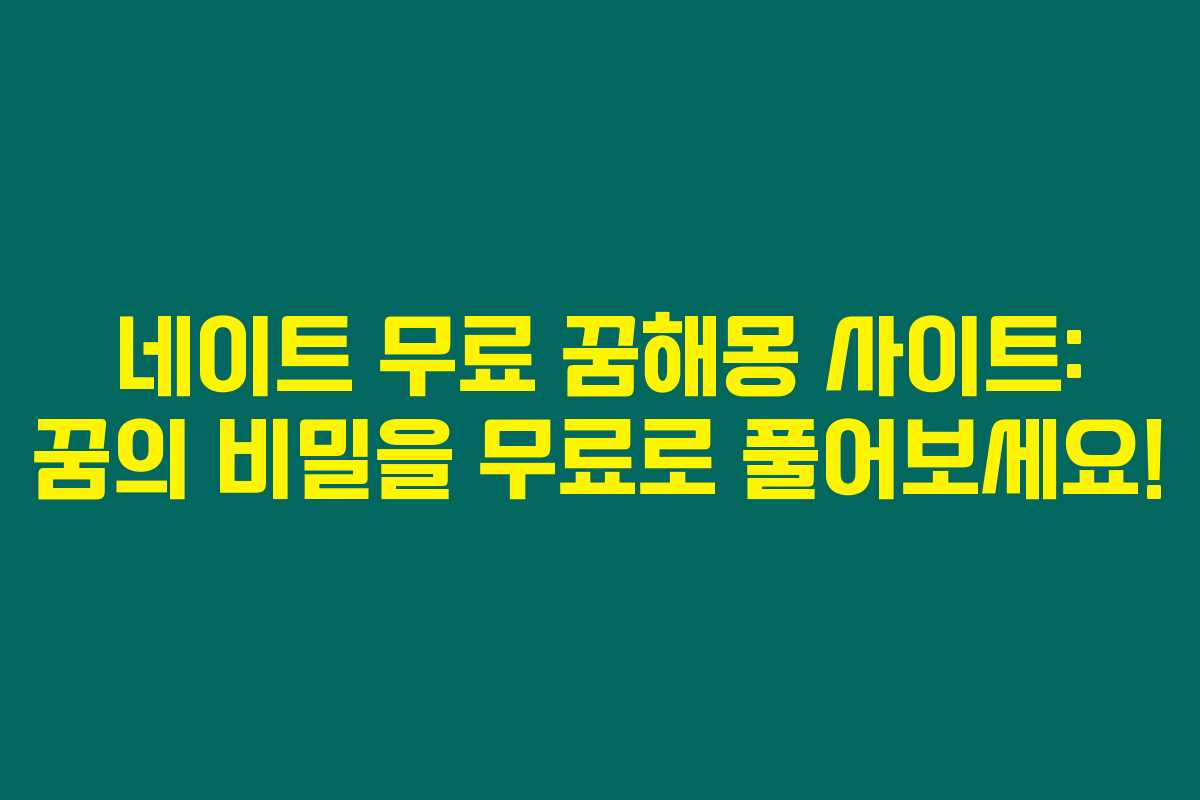 네이트 무료 꿈해몽 사이트는 사용자가 쉽고 편리하게 꿈을 해석할 수 있는 곳이에요. 제가 찬찬히 살펴본 바로는 여러 꿈에 대한 해석이 풍부하게 제공되어 있어, 원하는 내용을 쉽게 찾을 수 있었어요.