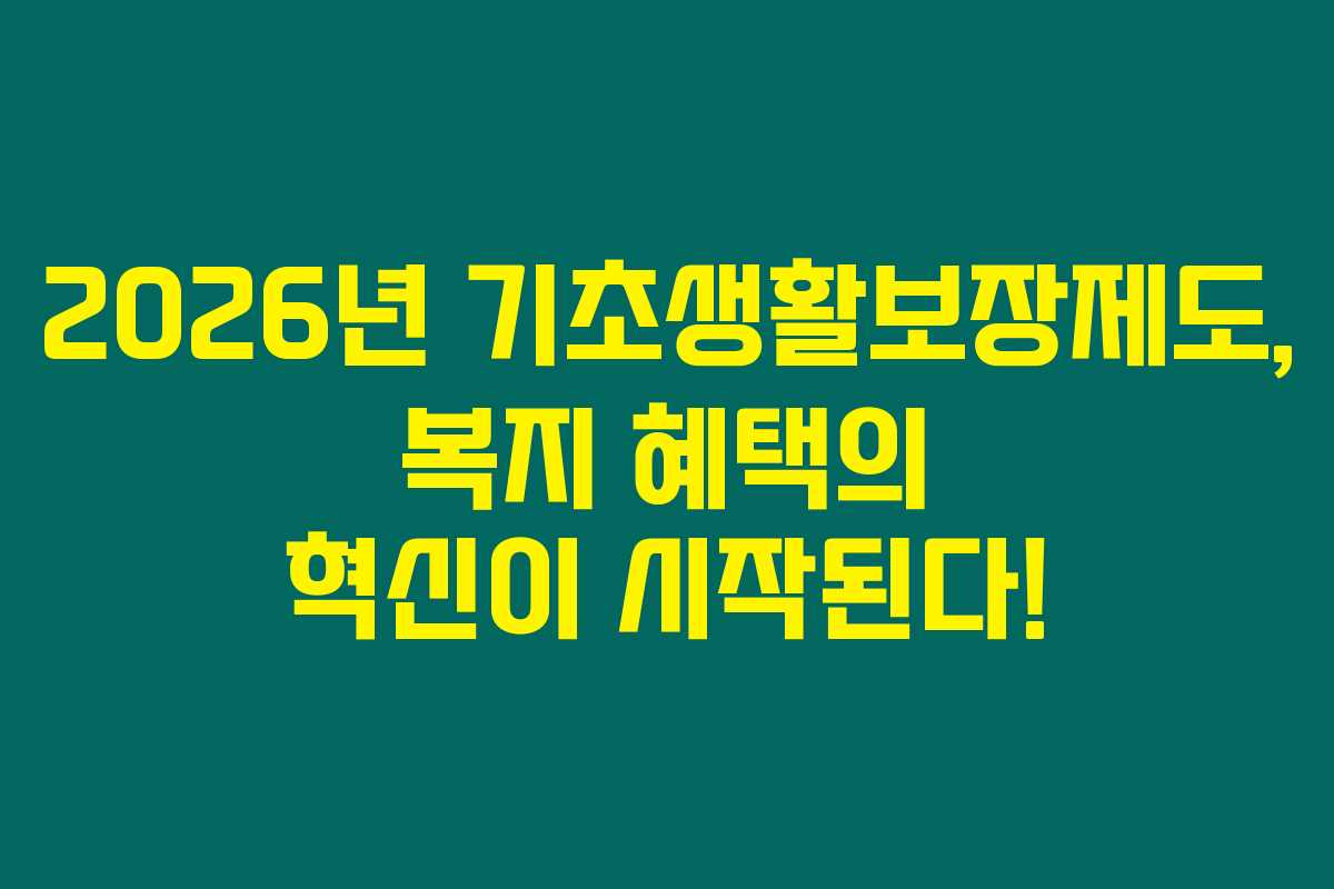 2026년부터 기초생활보장제도가 변화를 예고하고 있습니다. 저소득층을 위한 중요한 이 제도는 복지 사각지대를 없애고 생계 지원의 실효성을 높이는데 중점을 두고 있습니다. 아래를 읽어보시면 이 변화가 당신에게 어떤 복지 혜택을 가져올지 상세히 알 수 있어요.