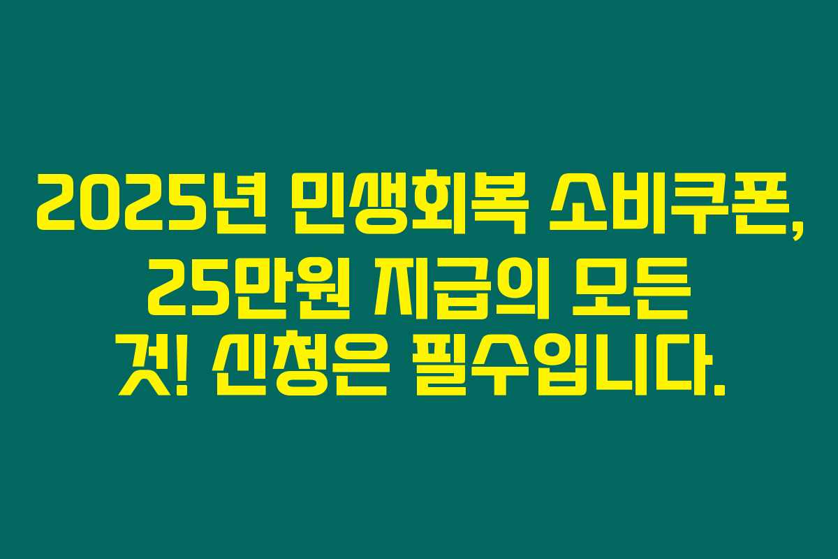 2025년 민생회복 소비쿠폰, 25만원 지급의 모든 것! 신청은 필수입니다.