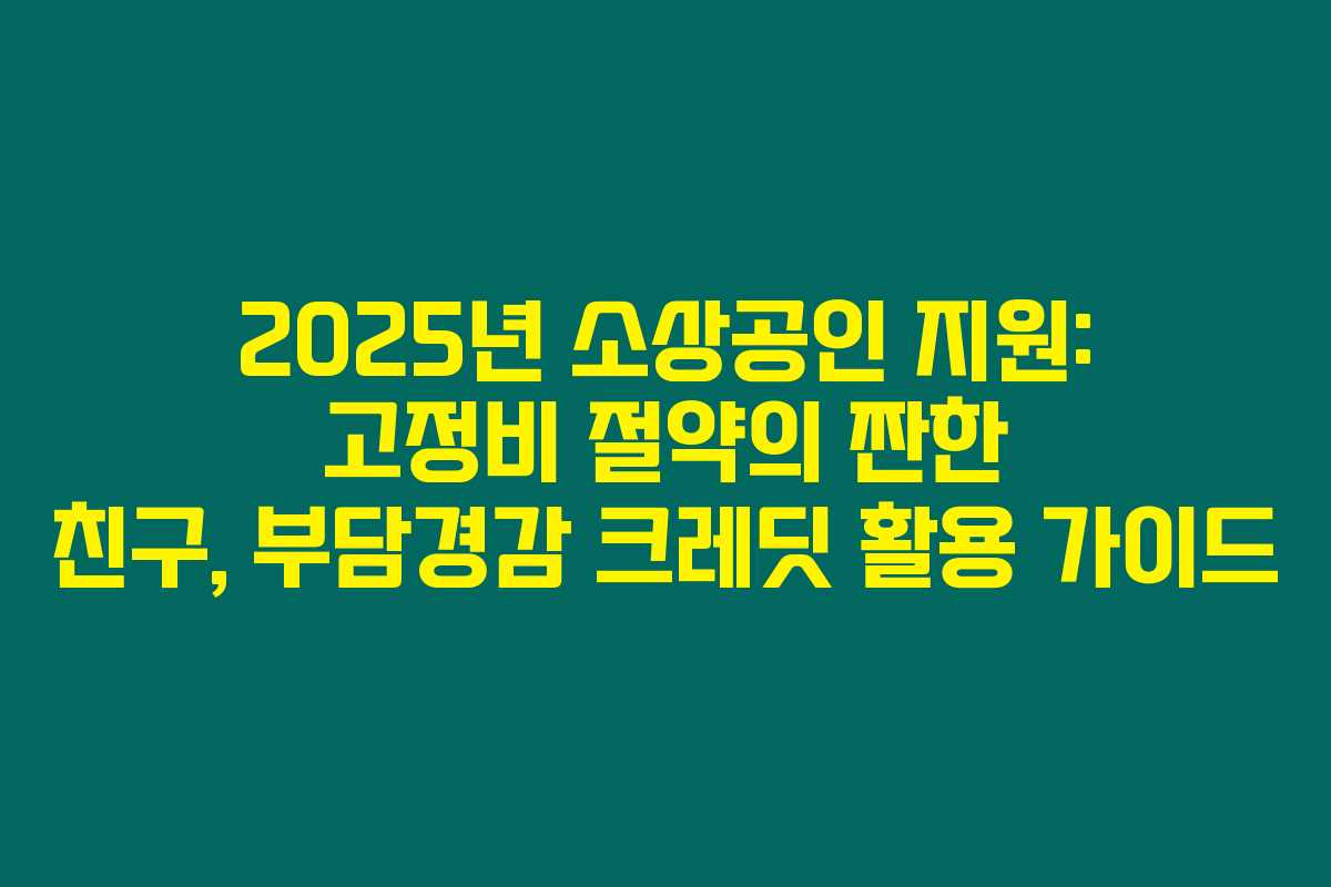 소상공인 사장님들, 요즘 고정비 부담을 느끼고 계신가요? 매달 빠져나가는 고정비는 정말 큰 스트레스이죠. 아래를 읽어보시면 이런 부담을 덜어줄 ‘소상공인 부담경감 크레딧’에 대해 알아볼 수 있어요. 최대 50만원 지원금을 신청하는 방법부터 활용까지, 자세히 안내해 드릴게요!