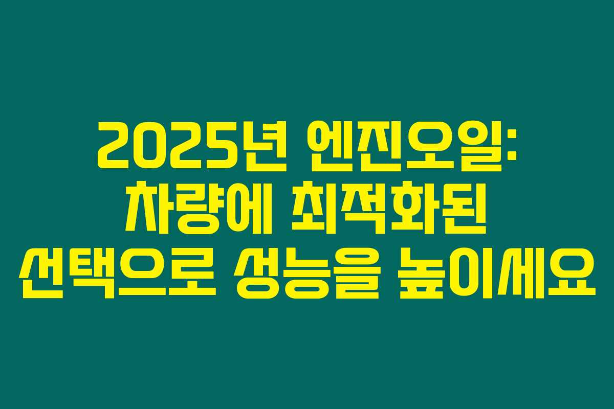 자동차 엔진의 건강을 지키기 위해 필수적인 엔진오일! 차량 브랜드에 따라 맞는 성분과 점도가 다르기 때문에, 내 차에 적합한 엔진오일을 찾는 것이 중요합니다. 아래를 읽어보시면 2025년 추천 엔진오일과 더불어 구매 가이드의 모든 것을 알게 될 거예요.