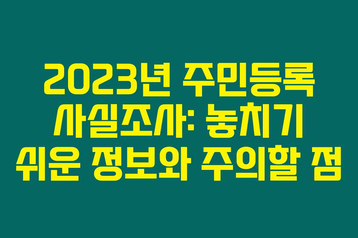 아래를 읽어보시면 2023년 주민등록 사실조사의 대상, 방법, 주의사항에 대해 자세히 알려드릴게요. 특히 법적 과태료가 무엇인지 꼭 알고 넘어가셔야 해요!