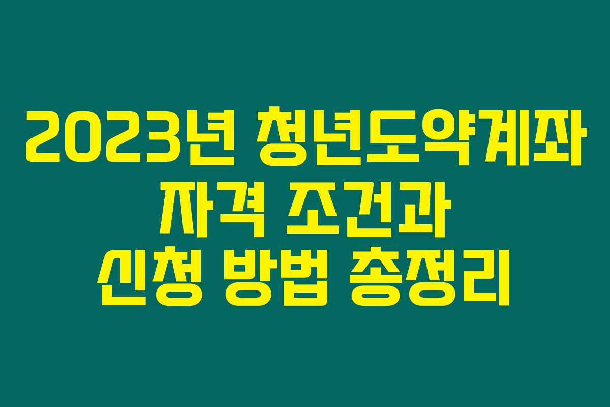 2023년, 청년들을 위한 절호의 기회가 도래했습니다. 새로운 청년도약계좌에 대해 궁금하신가요? 아래를 읽어보시면 자격 조건, 신청 시간, 가입 방법에 대해 모두 정리해드릴게요. 청년들의 목돈 마련에 꼭 필요한 정보를 확인해보세요!