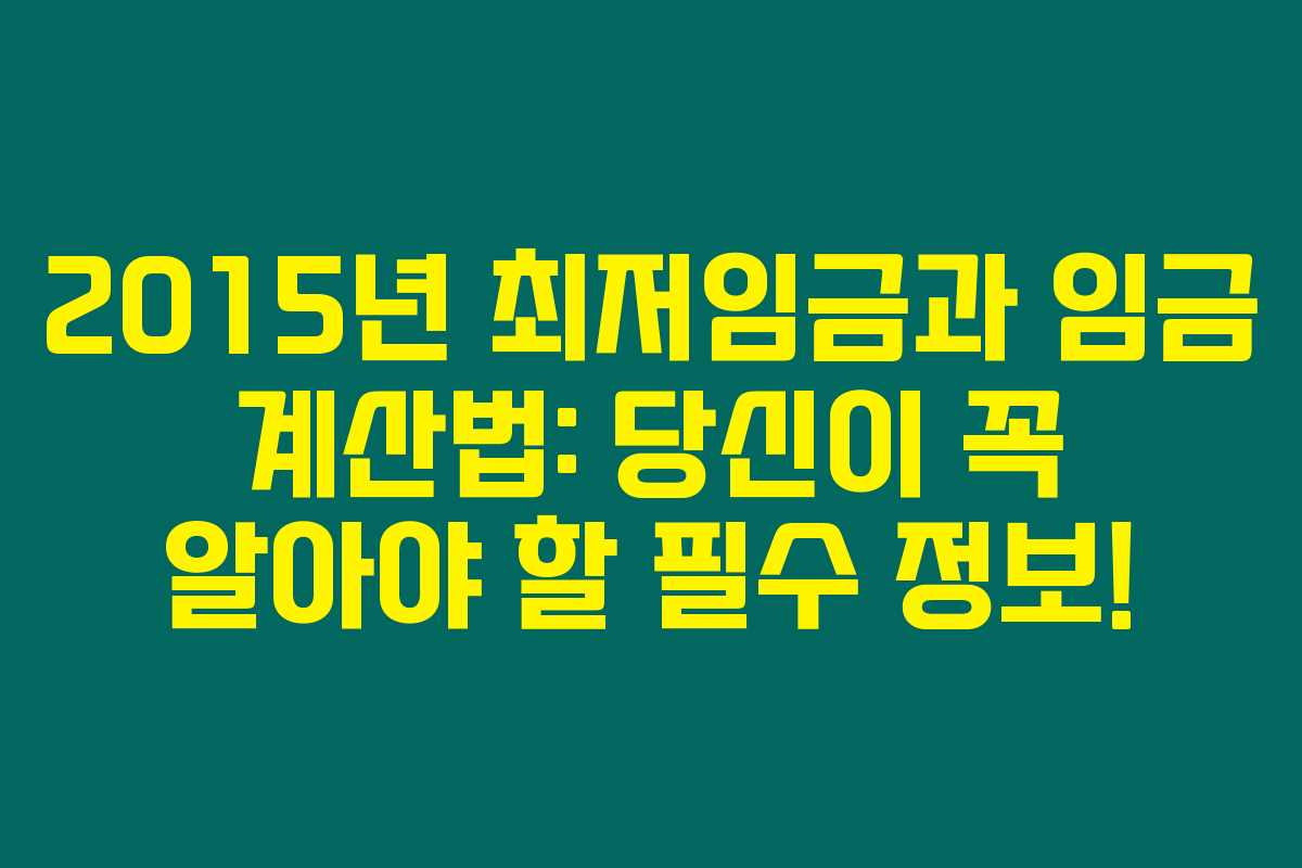 제가 직접 경험해본 결과로는 2015년도 한국의 최저임금에 대한 정보는 많은 사람들께 도움이 될 수 있는 주제입니다. 2015년도 최저시급에 대한 자세한 내용과 함께 일급, 주급, 월급 계산 방법 및 인상률에 대해 상세히 소개합니다.