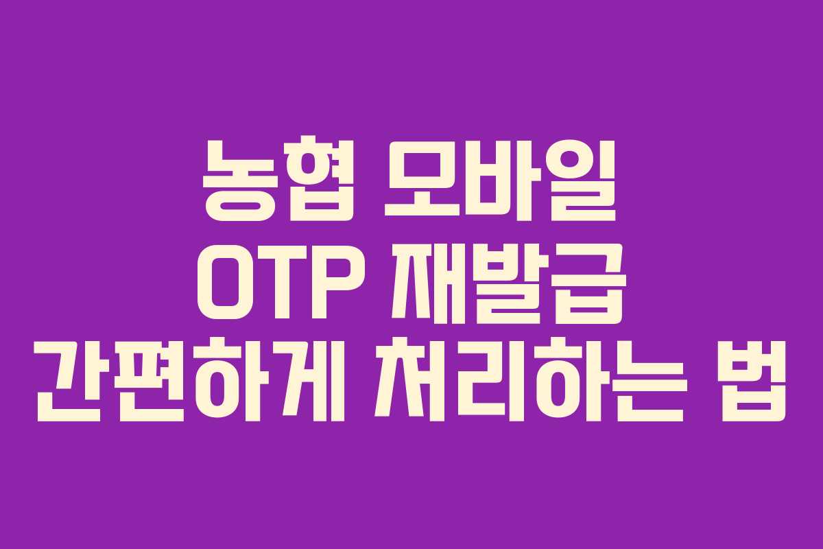 농협 모바일 OTP(One Time Password) 재발급 절차에 대해 알아보겠습니다. OTP는 온라인 뱅킹 등의 금융 거래 시 보안을 강화하는 중요한 요소로, 분실 시 빠르게 재발급받는 방법을 안내합니다.