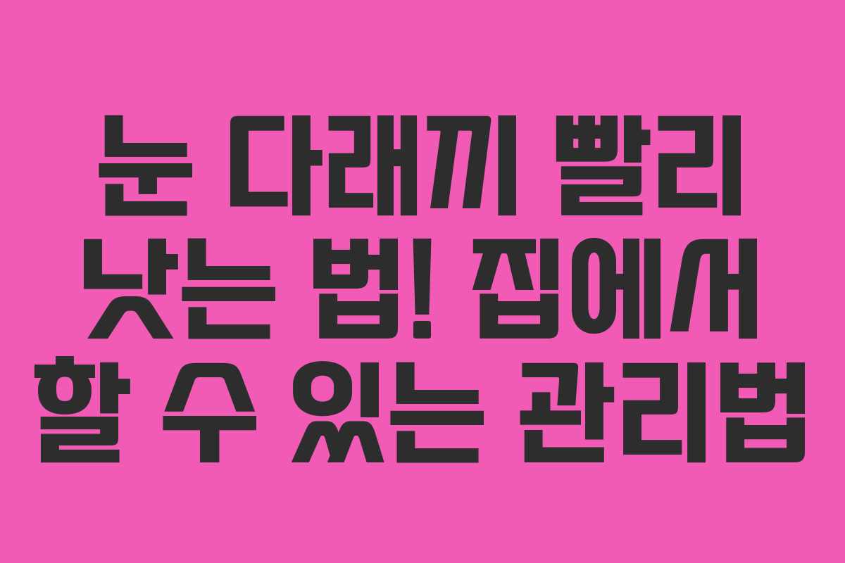눈 다래끼는 대부분 자연적으로 낫지만, 빠른 회복을 원한다면 따뜻한 찜질과 철저한 위생 관리가 필수적입니다. 증상이 심해질 경우에는 반드시 안과를 방문하여 치료받는 것이 좋습니다.