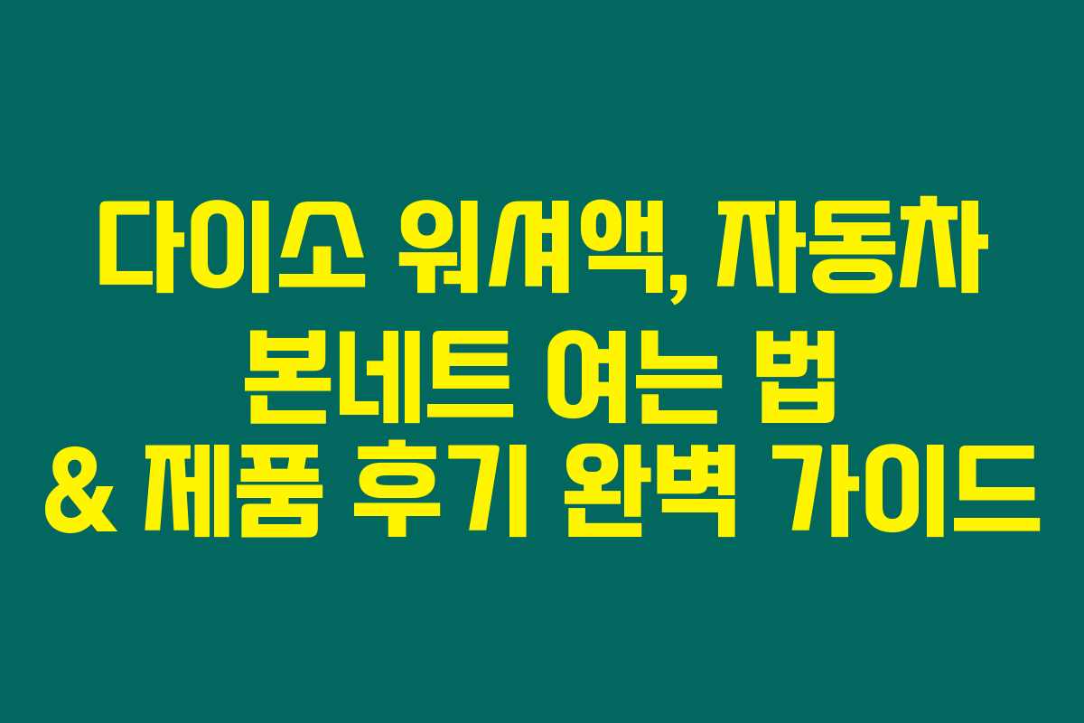 제가 직접 알아본 바로는, 차량을 유지하는 데 꼭 필요한 요소 중 하나가 바로 워셔액입니다. 많은 분들이 이 제품의 중요성을 간과하는 경향이 있지만, 운전을 더 안전하고 편리하게 해주는 역할을 합니다. 특히 비 오는 날에 더 더욱 필요하죠. 그래서 이번 글에서는 다이소 워셔액 후기를 비롯해, 자동차의 본네트를 여는 방법에 대해 자세히 설명드리겠습니다. 아래를 읽어보시면 도움이 될 것이라고 생각해요.