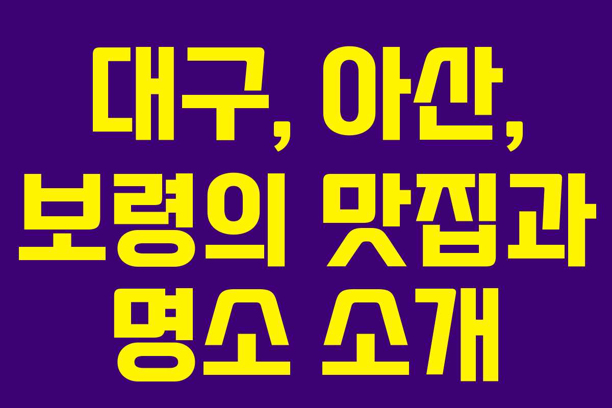 이번 포스트에서는 대구, 아산, 보령 지역의 다양한 맛집과 명소를 소개합니다. 각 지역의 특별한 음식과 방문할 만한 장소를 통해 여행 계획에 도움을 드리겠습니다.