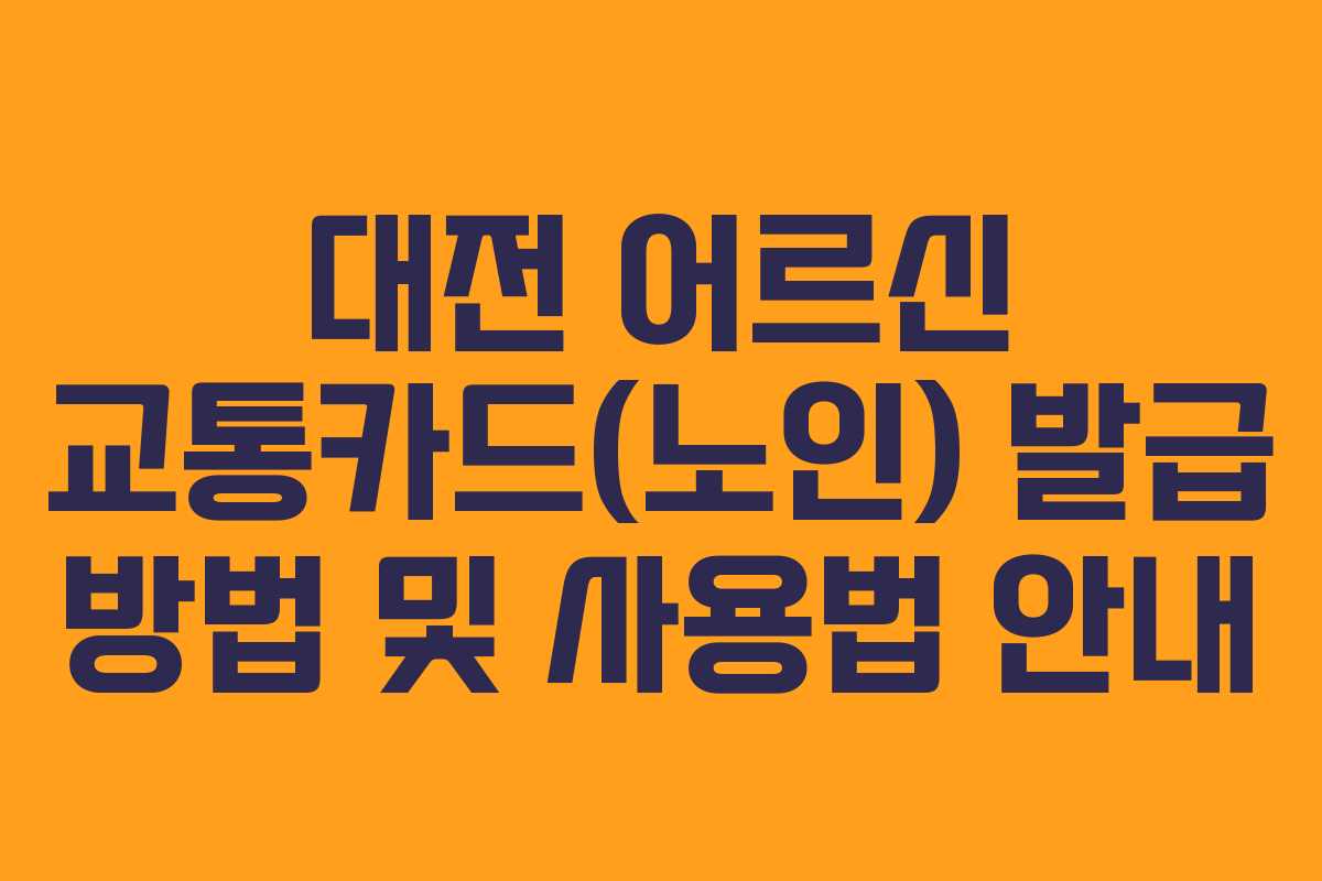 대전 어르신 교통카드는 만 65세 이상 대전 시민에게 매우 유용한 혜택을 제공합니다. 간단한 절차로 쉽게 발급받아 대중교통을 편리하게 이용해 보세요!