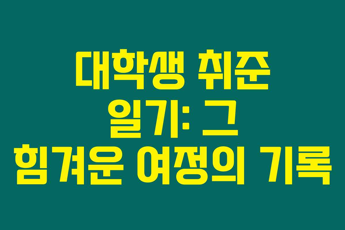 대학생 취준에서 가장 중요한 것은 목표를 명확히 하고, 기회를 최대한 활용하는 것입니다. 힘든 여정이지만, 꾸준히 준비하면 성공의 기쁨을 누릴 수 있습니다.