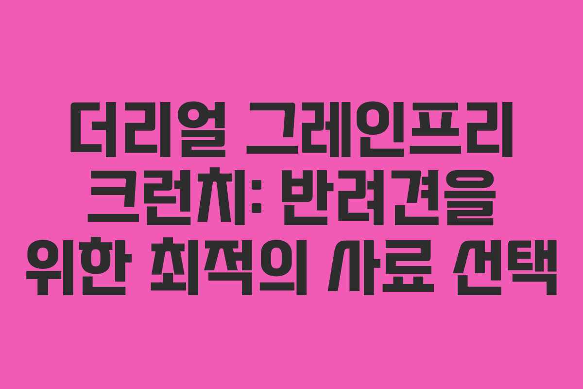 더리얼 그레인프리 크런치는 건강하고 맛있는 반려견 사료로, 반려견의 식사에 적합한 선택이 될 것입니다. 사료 선택 시 꼭 확인해야 할 요소를 바탕으로 올바른 결정을 내리시길 바랍니다.