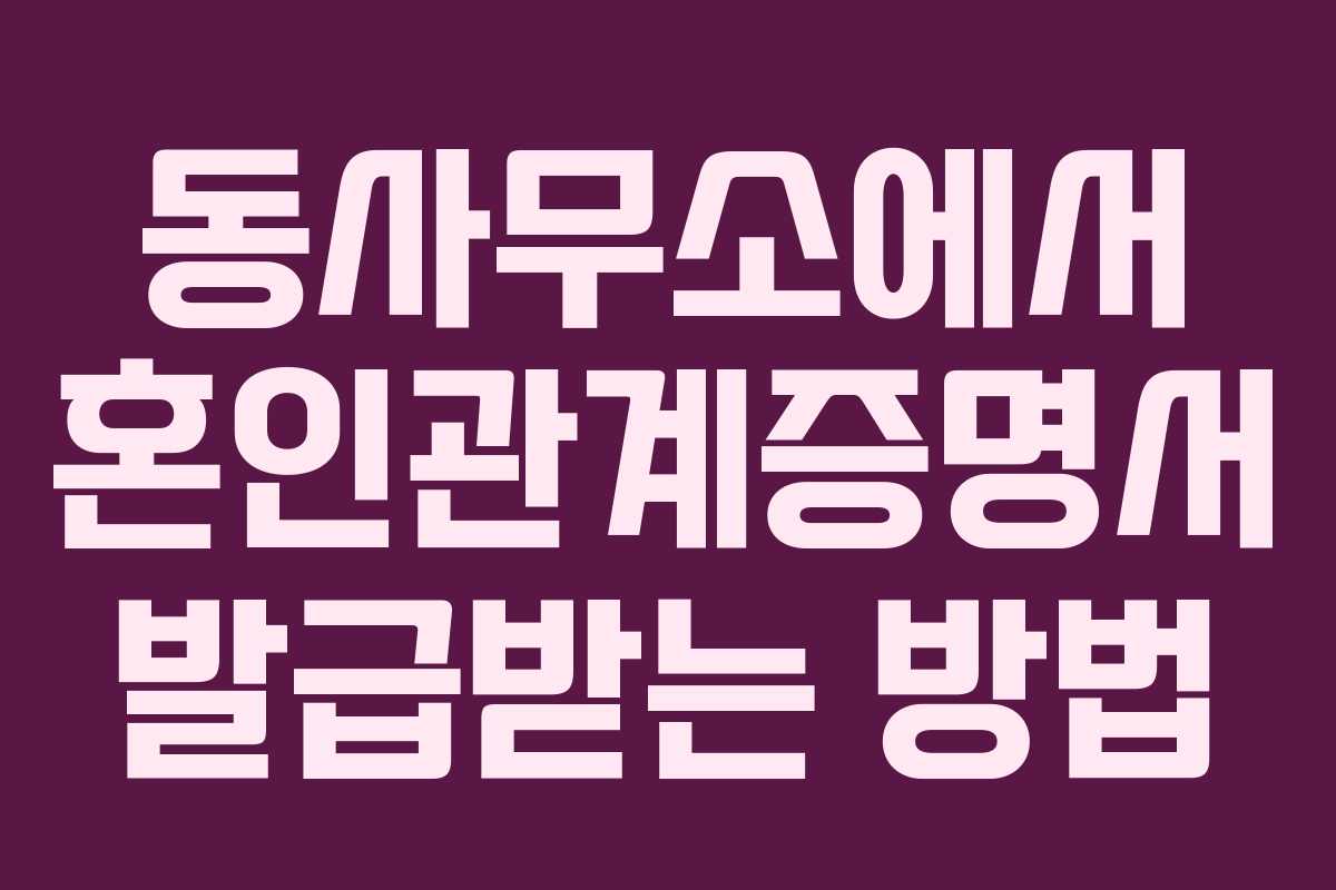 혼인관계증명서는 가까운 동사무소를 방문하거나 온라인 시스템에서 신청하여 받을 수 있습니다. 이 과정에서는 본인 확인을 위한 신분증과 신청서가 필요합니다.