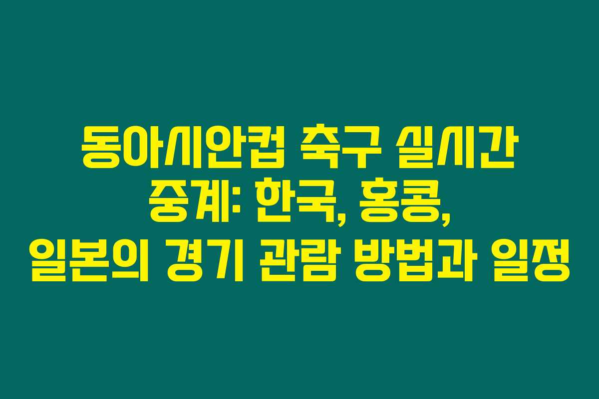 동아시안컵 축구 대회를 시청할 수 있는 방법은 몇 가지가 있어요. 다양한 플랫폼에서 중계하고 있으니, 자신에게 맞는 방법으로 편리하게 시청하세요.