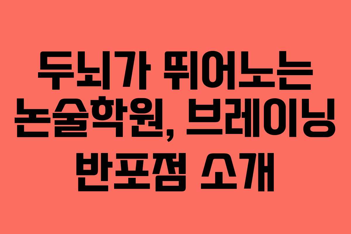 브레이닝 반포점은 놀면서 배우는 독특한 논술 학원입니다. 이곳은 유아부터 초등학생까지 다양한 연령대를 대상으로 하며, 이해력과 사고력을 키울 수 있는 프로그램을 제공합니다.