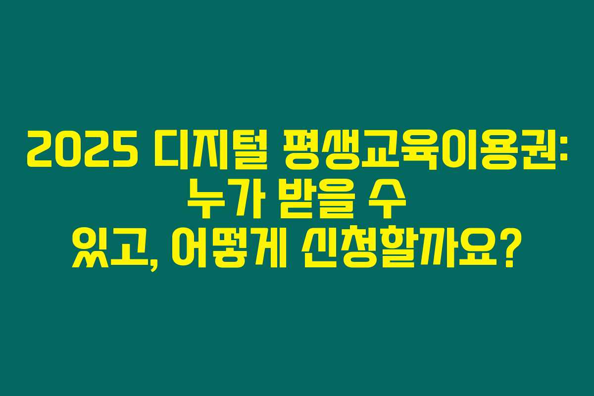 제가 직접 리서치한 바로는, 2025년부터 시행되는 디지털 평생교육이용권은 성인들이 디지털 능력을 향상할 수 있도록 돕는 훌륭한 기회입니다. 지원 대상, 신청 방법, 그리고 지원 금액에 관한 자세한 정보를 아래를 읽어보시면 알아볼 수 있습니다.