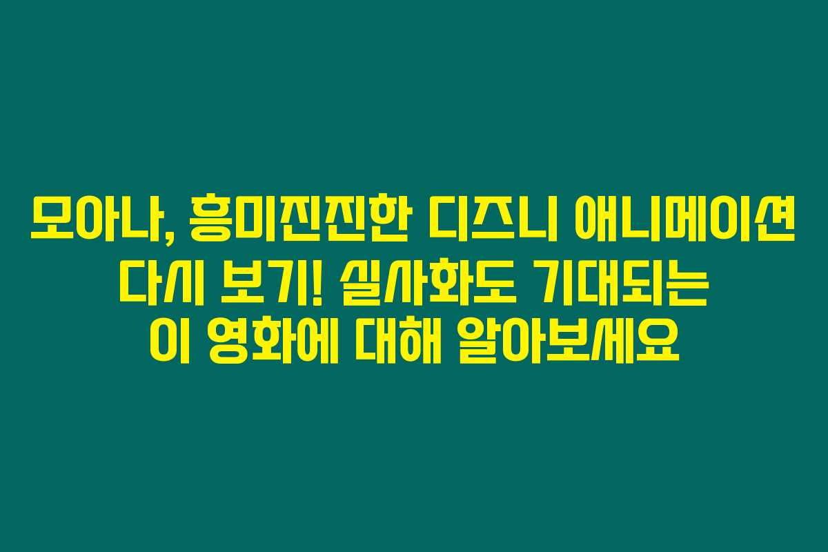 모아나, 흥미진진한 디즈니 애니메이션 다시 보기! 실사화도 기대되는 이 영화에 대해 알아보세요