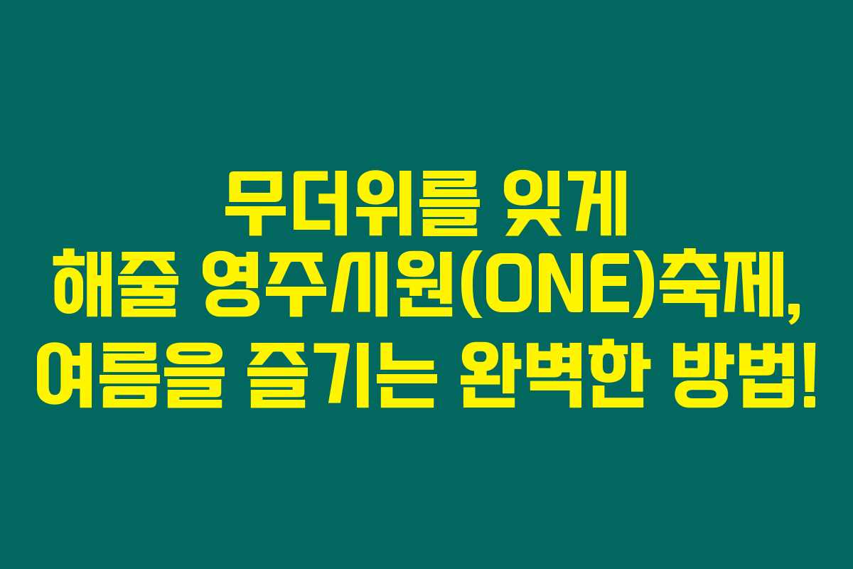2024년 여름, 무더운 날씨 속에서 시원한 즐길거리를 찾아 헤매고 계신가요? 영주시원(ONE)축제가 7월 27일부터 8월 4일까지 9일간 펼쳐집니다. 이 축제는 영주시 문정둔치 시민운동장에서 열리며, 가족과 친구, 연인과 함께 여름을 신나게 만끽할 수 있는 다채로운 프로그램과 재미 넘치는 액티비티들이 준비되어 있다고 해요. 아래를 읽어보시면, 이번 축제의 다양한 매력을 자세히 알아보실 수 있습니다!