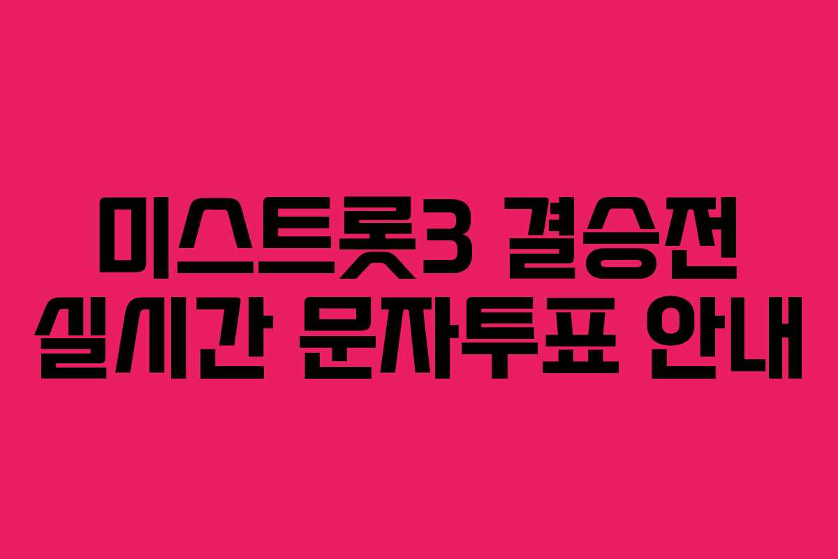 미스트롯3의 결승전이 3월 7일 목요일 밤 9시 30분에 생방송으로 진행됩니다. 이번 방송에서는 시청자 여러분의 실시간 문자투표가 이루어지며, 응원하는 후보에게 소중한 한 표를 전달할 수 있는 기회를 제공합니다. 투표 방법을 미리 숙지하여 무효표가 발생하지 않도록 주의하세요.