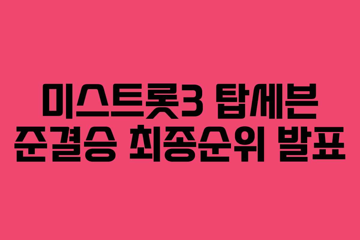 미스트롯3의 준결승이 드디어 마무리되었습니다. 오늘 발표된 순위는 10명의 준결승 진출자 중 7명이 생방송 결승 무대에 진출하게 되며, 나머지 3명은 아쉽게도 이별을 맞이하게 됩니다. 이번 순위는 마스터 군단의 점수와 국민 마스터 100명의 점수를 합산하여 결정되었습니다.
