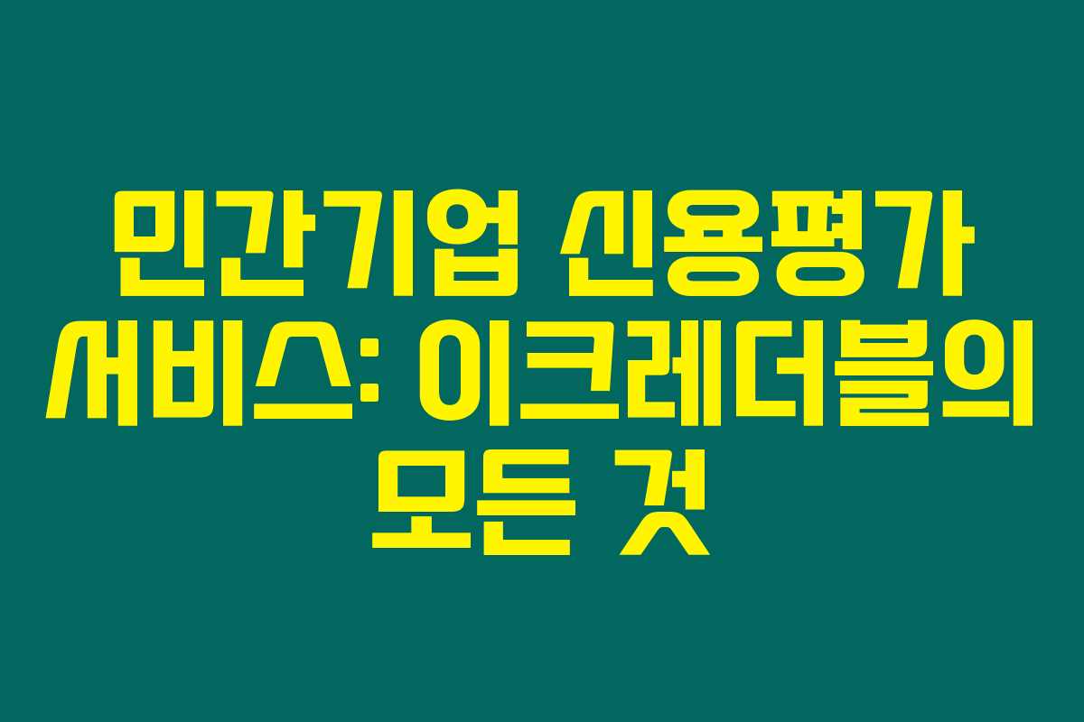 제가 직접 알아본 바로는, 이크레더블 신용평가는 국내 기업들이 보다 안전하고 효과적으로 거래를 관리할 수 있도록 돕는 혁신적인 서비스입니다. 이 글에서는 이크레더블의 민간기업 신용평가 서비스에 대해 깊이 있게 알아보려고 해요. 아래를 읽어보시면 이 서비스가 왜 중요한지, 어떤 절차가 필요한지 잘 이해하실 수 있을 거예요.