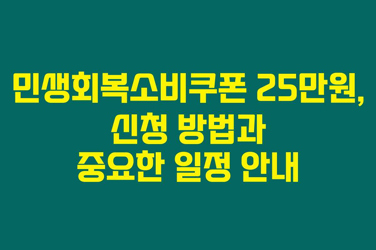 제가 직접 알아본 바로는, 민생회복소비쿠폰 25만원은 정부가 경제 회복을 위해 지원하는 소비 촉진 프로그램으로, 많은 분들이 이 혜택을 누리기를 원하고 있습니다. 아래를 읽어보시면 신청 방법과 필요한 일정에 대해 자세히 안내드릴게요.
