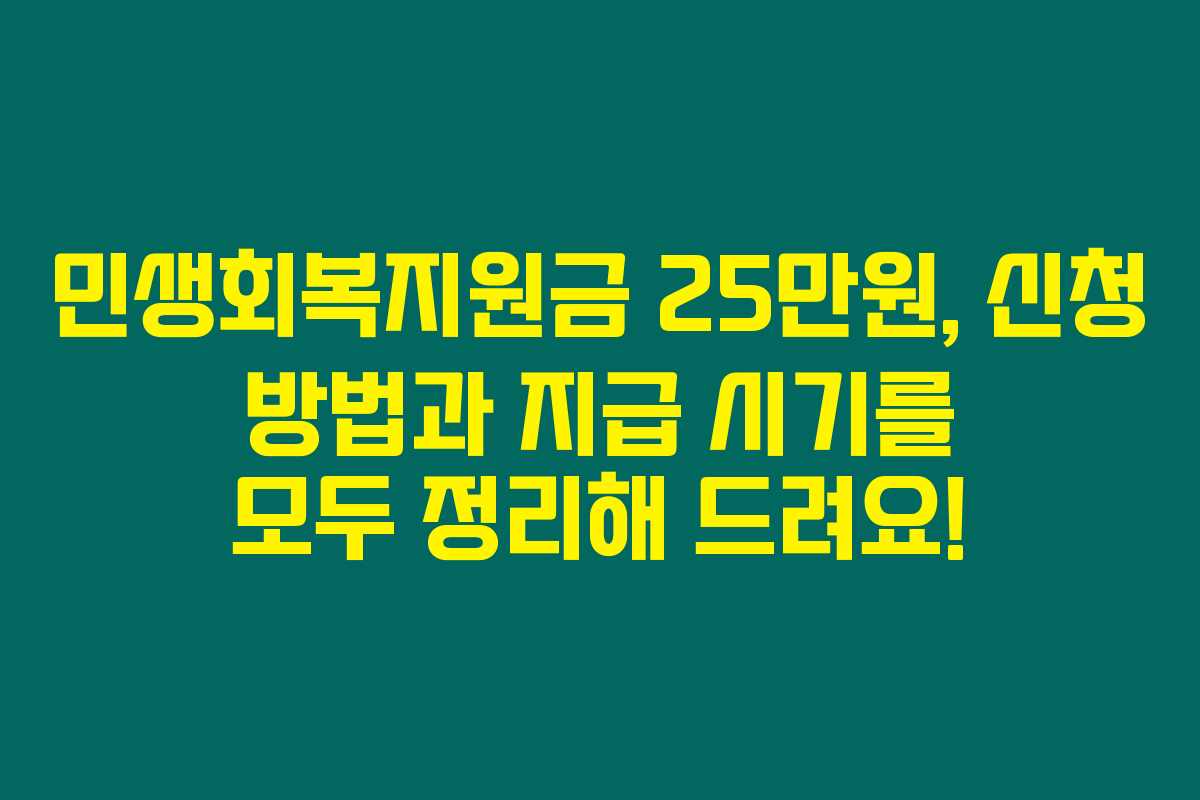 제가 직접 리서치한 바로는, 민생회복지원금 25만원은 2024년 하반기 중에 신청 가능 날짜가 확정될 예정입니다. 따라서 정해진 일정에 맞추어 신청하시기 바랍니다.