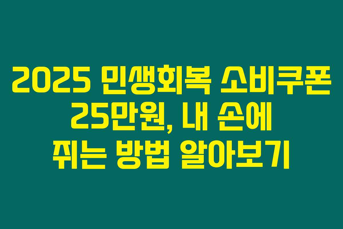 2025 민생회복 소비쿠폰 25만원, 내 손에 쥐는 방법 알아보기