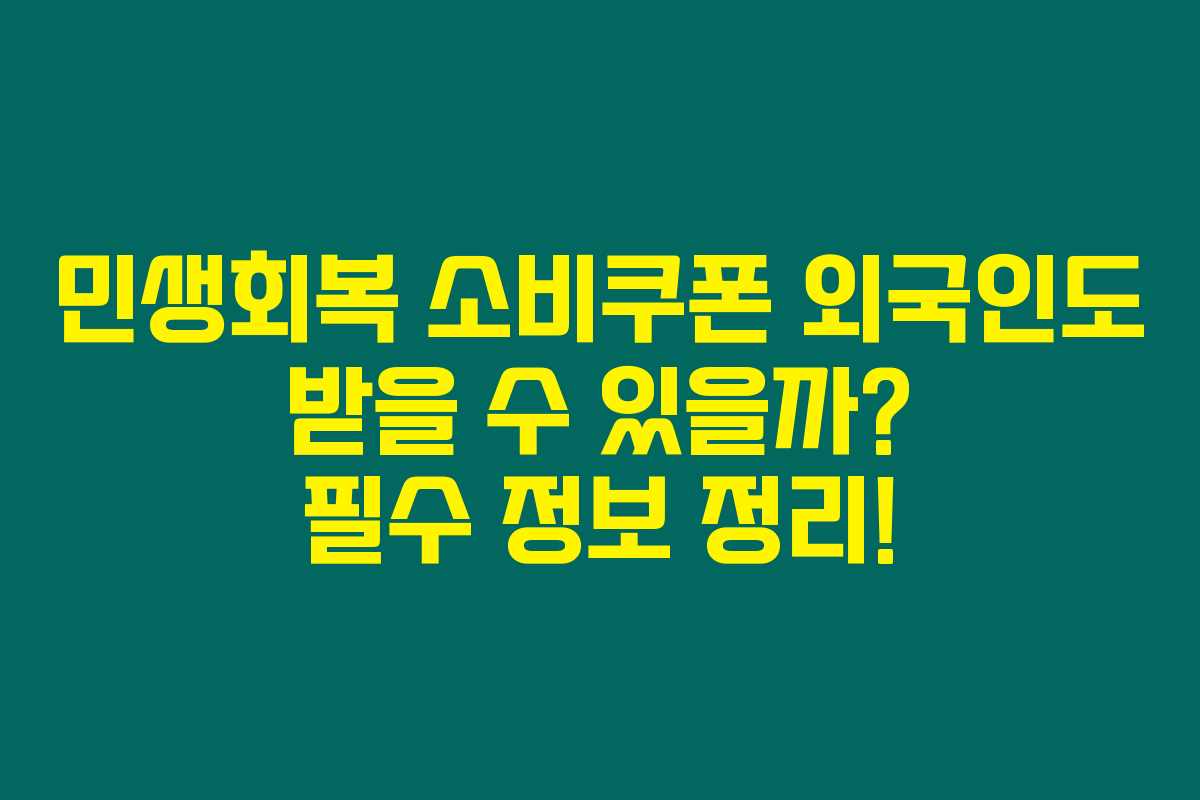 민생회복 소비쿠폰은 기본적으로 외국인에게 지급되지 않지만, 결혼이민자, 영주권자 등은 경우에 따라 신청 가능할 수 있습니다.