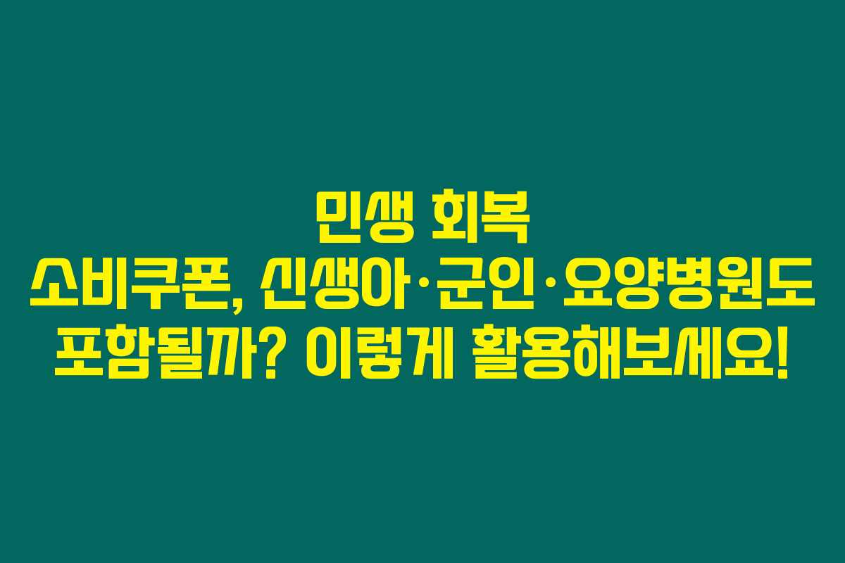 2025년 하반기, 우리 정부는 경제 회복과 소비 촉진을 위해 민생회복 소비쿠폰을 지급하겠다고 발표했어요. 신생아부터 군인, 요양시설에 계신 분들까지 다양한 대상자들이 포함될 수 있을지 궁금하지 않으신가요? 아래를 읽어보시면 각 사항에 대한 명확한 정보를 확인할 수 있습니다.