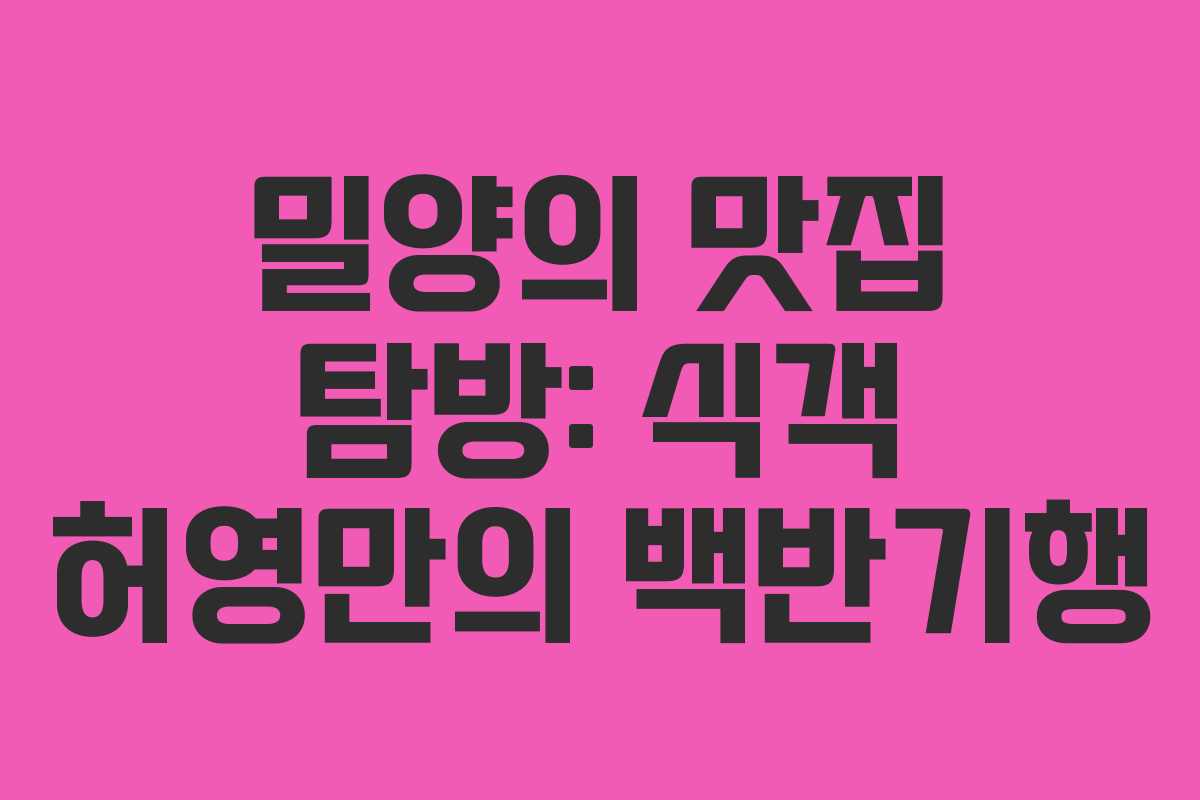 밀양에서 가성비 좋은 20찬 정식을 즐길 수 있는 식당을 소개합니다. TV조선의 <식객 허영만의 백반기행>에서 소개된 이곳은 돌솥밥과 다양한 반찬을 맛볼 수 있는 집입니다. 오늘은 이 식당의 위치와 메뉴, 특징에 대해 알아보겠습니다.