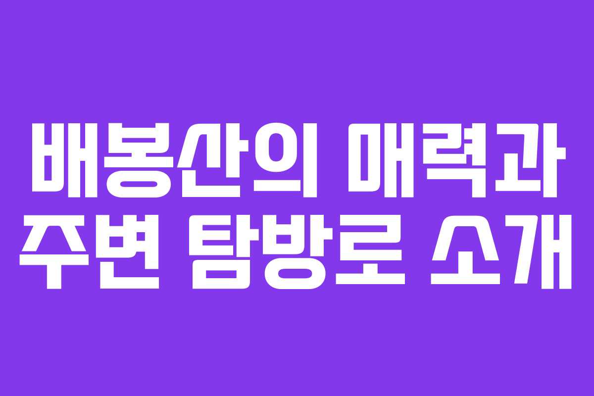 배봉산은 서울 동대문구 전농동에 위치한 산으로, 서울시립대학교와 삼육서울병원, 삼육보건대학교를 비롯한 여러 교육기관과 가까워 지역 주민들에게 사랑받는 공간이다. 이곳은 도시 속에서 자연을 느낄 수 있는 장소로, 다양한 산책로와 경치가 조화를 이루며 방문객들을 맞이한다. 배봉산에 올라 정상에 서면 중랑천과 주변 시가지를 한눈에 내려다볼 수 있어 많은 이들이 찾는 명소가 되고 있다.