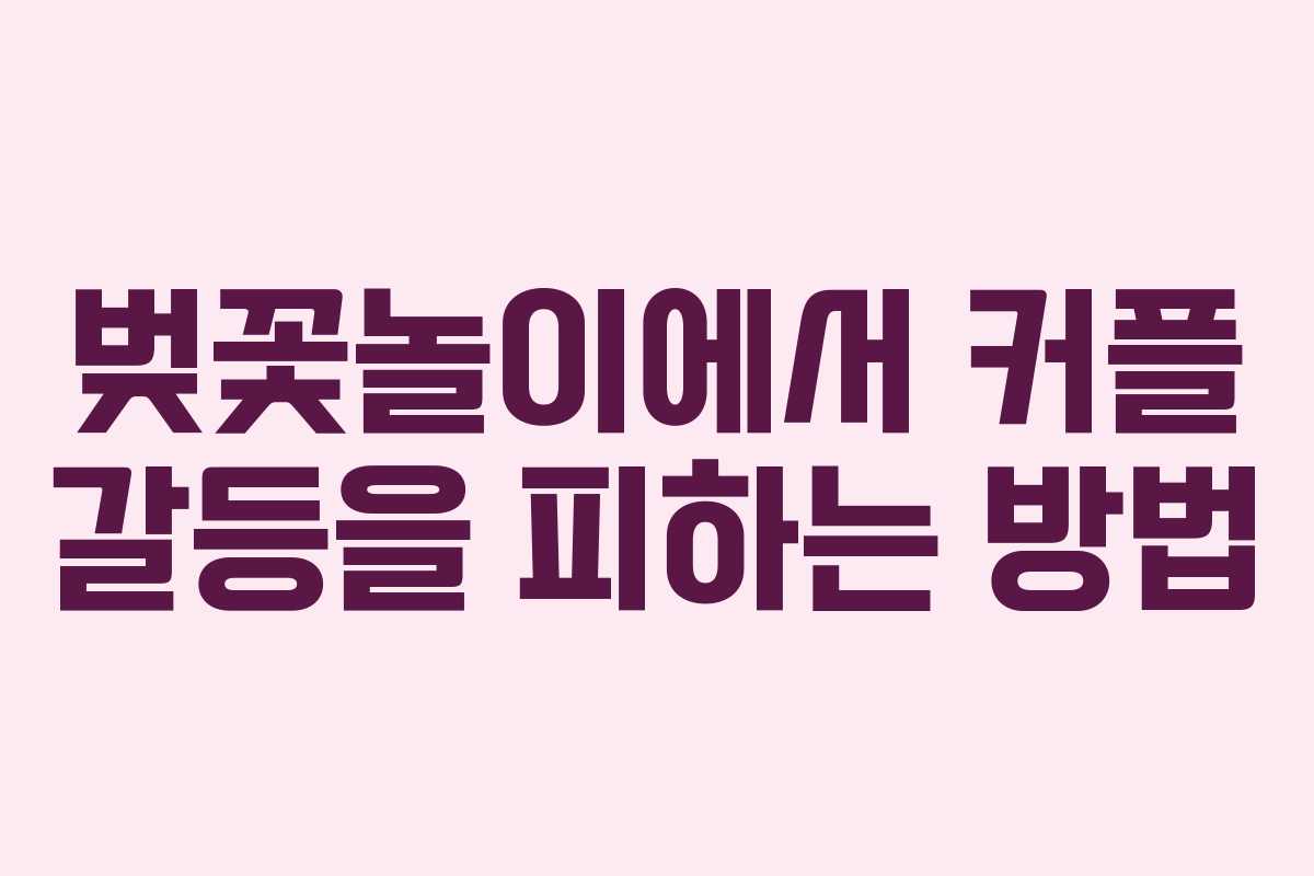 사전에 상대방과 충분한 소통을 통해 서로의 기대와 우려를 나누는 것이 중요합니다. 벚꽃놀이를 가기 전에 각자의 생각을 확인하고, 함께 계획을 세우면 갈등을 줄일 수 있습니다.