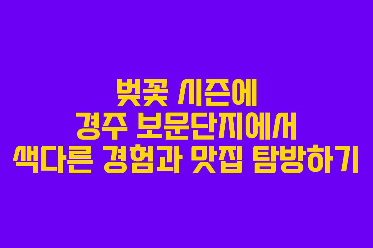 - 1. 벚꽃 시즌에 경주를 방문해야 하는 이유는 무엇인가요