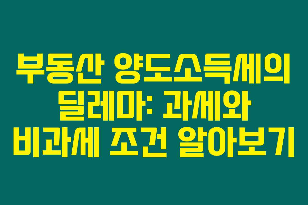 부동산의 양도소득세에 대해서 제가 직접 체크해 본 결과, 이 세금은 주택 거래 시 나타나는 소득에 부과되는 세금으로, 특히 1세대 1주택자의 경우 특정 조건에 따라 비과세가 적용될 수 있다는 점이 흥미로웠어요. 그러니 아래를 읽어보시면 양도소득세의 주요 과세와 비과세 조건을 확실히 이해할 수 있습니다.