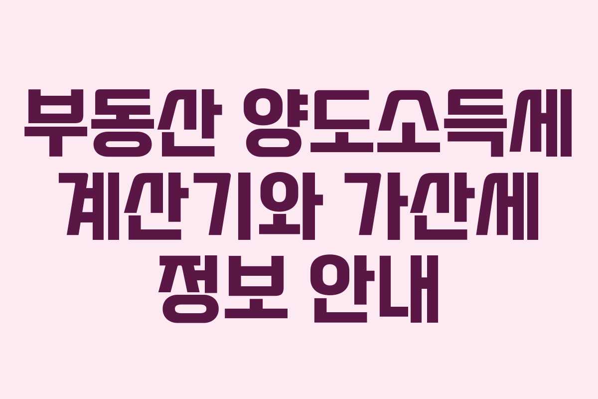 부동산 양도소득세는 개인이 부동산 및 주식과 같은 자산을 양도하면서 발생하는 소득에 부과되는 세금입니다. 이 글에서는 양도소득세를 간편하게 계산할 수 있는 방법과 관련된 가산세 정보를 안내합니다.
